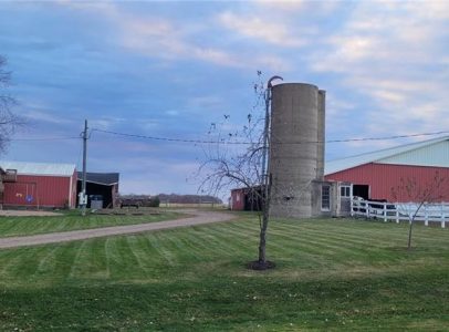 3.7 acres of country paradise! Lovely 2 story brick home with 4 bedrooms, 2 baths, office, enclosed porch, 1st floor laundry, 65’x 90′ shed/cattle barn, 22’x 68′ shed, 2 car detached garage, newer outdoor wood burner heat, and a perfect hilltop location! Nice high tensile fence for horses, beef, etc. with automatic waterer in the shed. Large firewood pile is negotiable. Freezer included is the upright freezer is the basement. Chest freezers are not included. Basement is located under the entire house except the West 8 feet which has crawl space.